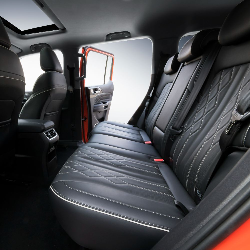 Slip into the driver’s seat of the TANK and experience a true 5-Star cabin. Every detail speaks of refinement, from the Soft Nappa, Full-Grain Leather Seats—heated and cooled in the front row for year-round comfort—to the expansive Sunroof that floods the interior with light and openness.